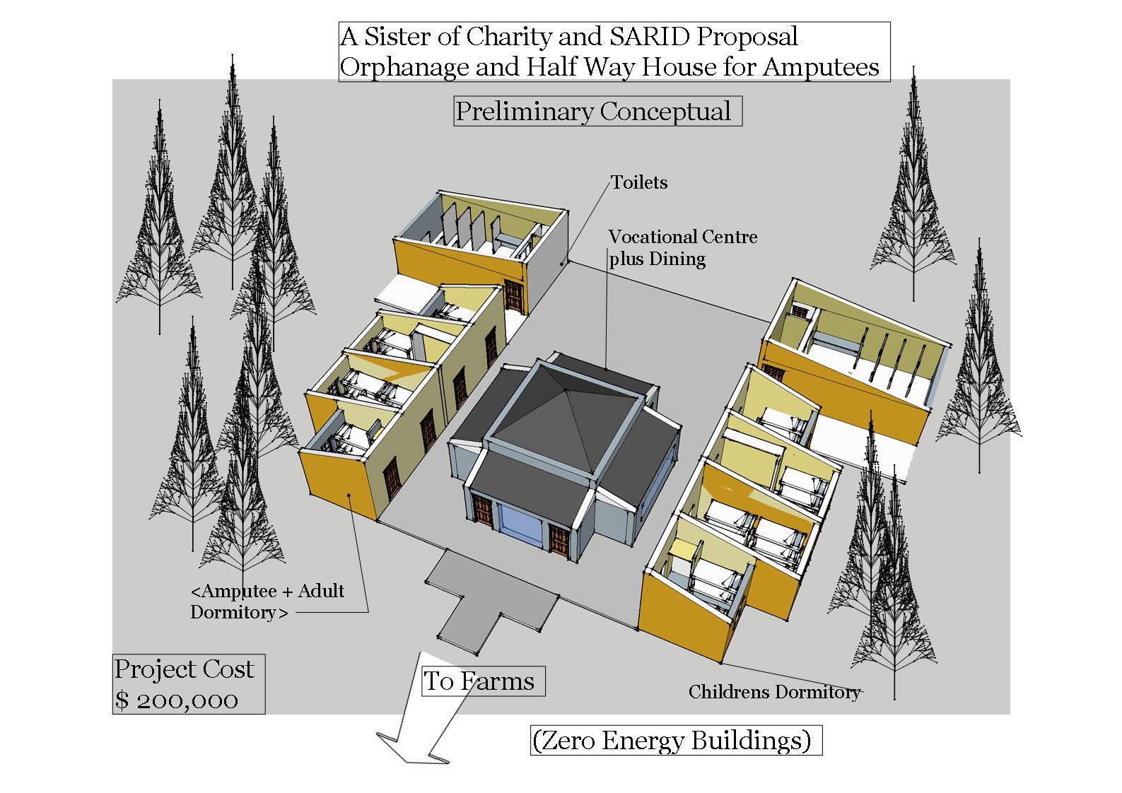 Orphanage and Half-Way House for Amputees - project below # 030117. See preliminary concept (bird's eye view) below.