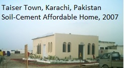 In 2007 the mayor of Karachi asked SARID to build a prototype affordable two bedroom home, using their "MASS" technology in a slum area of Karachi, Pakistan. Karachi has extreme hot weather, with temperatures reaching 110 Fahrenheit in summer. SARID engineers design/ built an affordable soil cement home with insulated walls, made of waste styrofoam (EPS) boxes. The walls have an average "R" value (heat resistance value) of 20. In comparison a twelve inch thick masonry walls (uninsulated - the norm in Karachi) has an "R" value of less than 1.5 at best. The higher the "R" value the higher insulation value. Homes in USA have typically "R" value of 14. The home was designed with an internal courtyard to further leverage micro-climate advantages in a humid and and very hot part of the world. The mayor later innaugrated the home.